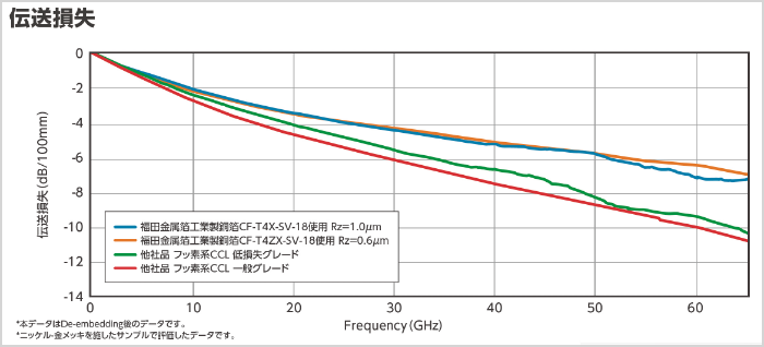 *4:25,50,100mm長さのsパラ測定後、de-embeddedによって算出した伝送損失より逆算した値。